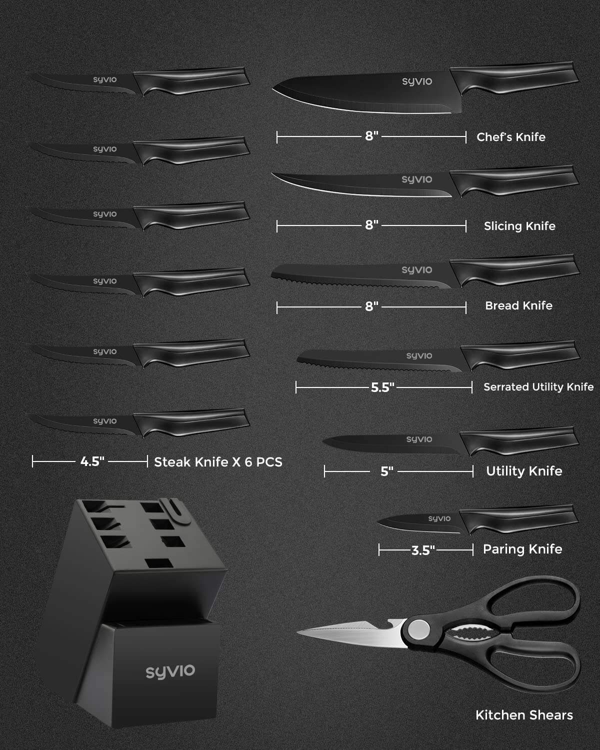 Knife Sets for Kitchen with Block, 14 Piece with Built-in Sharpener fo
