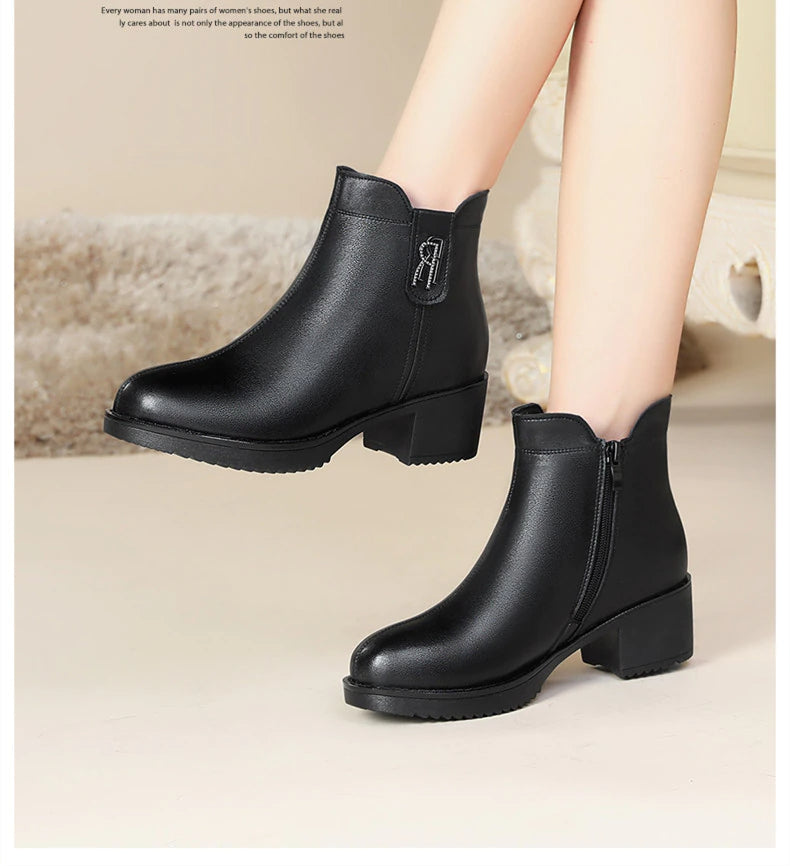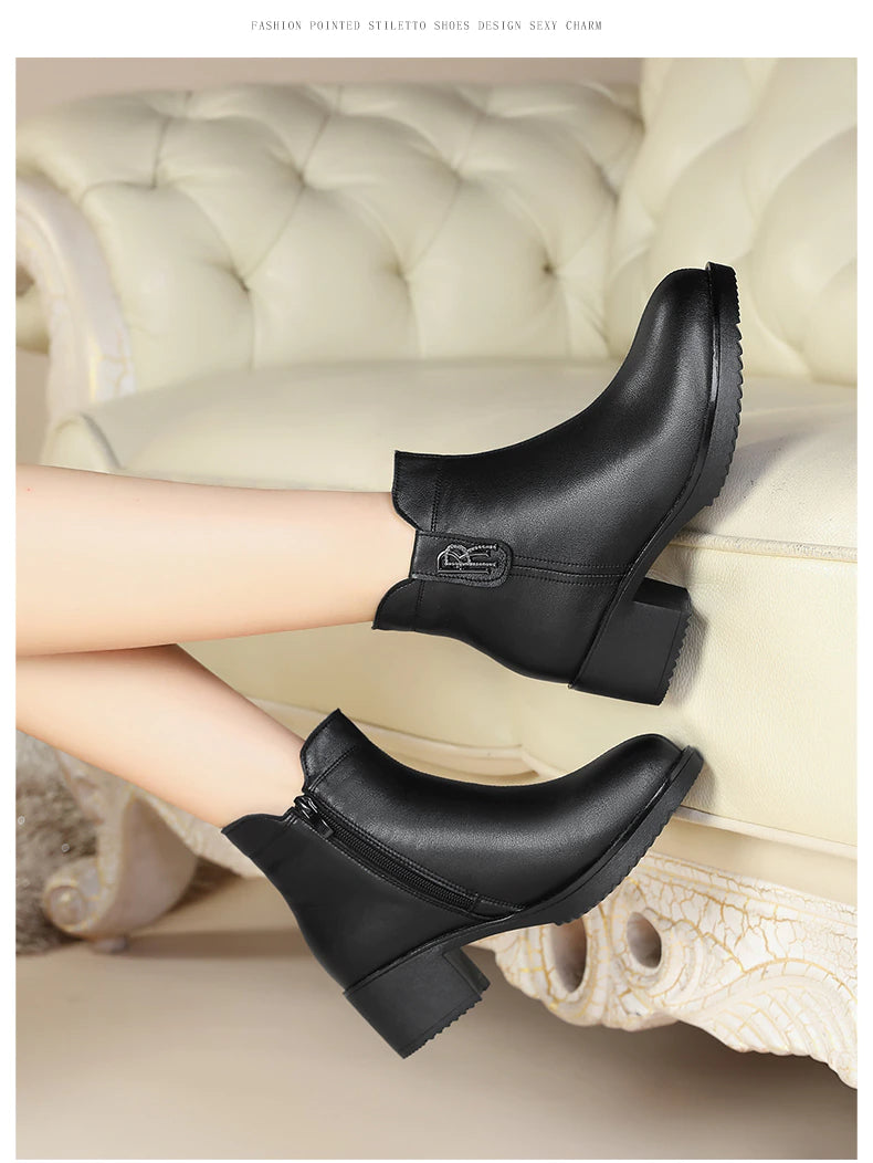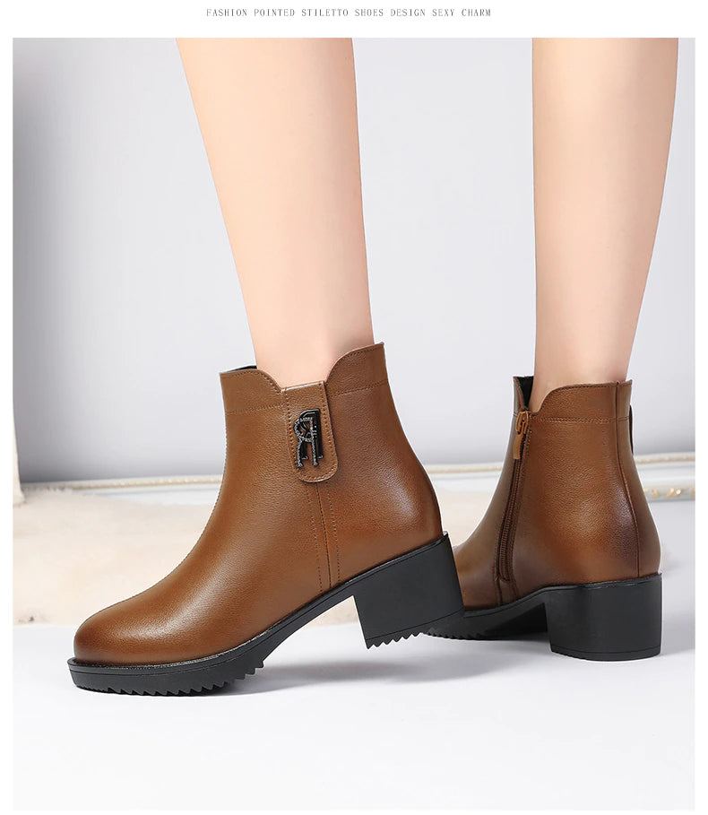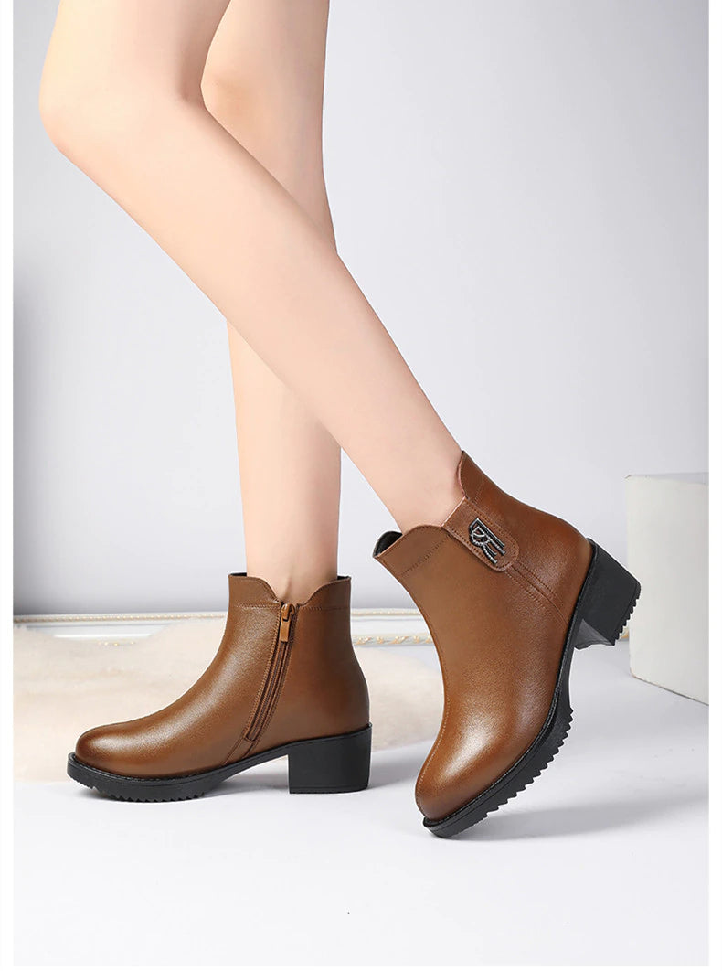 Botas de cuero con tacón bajo - Colección Otoño