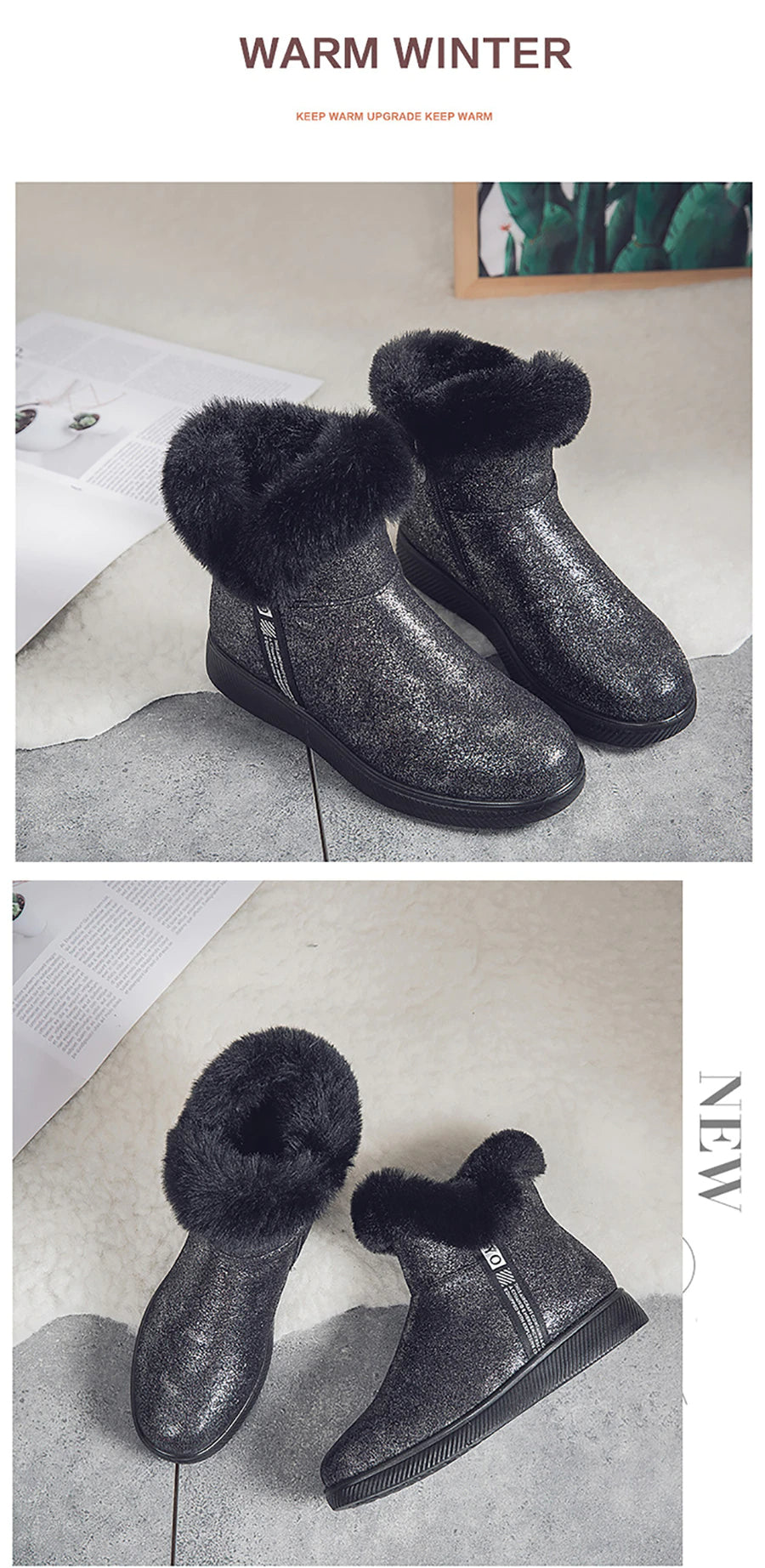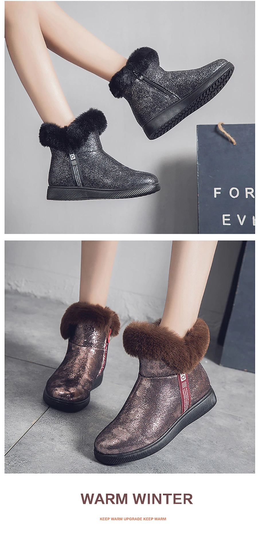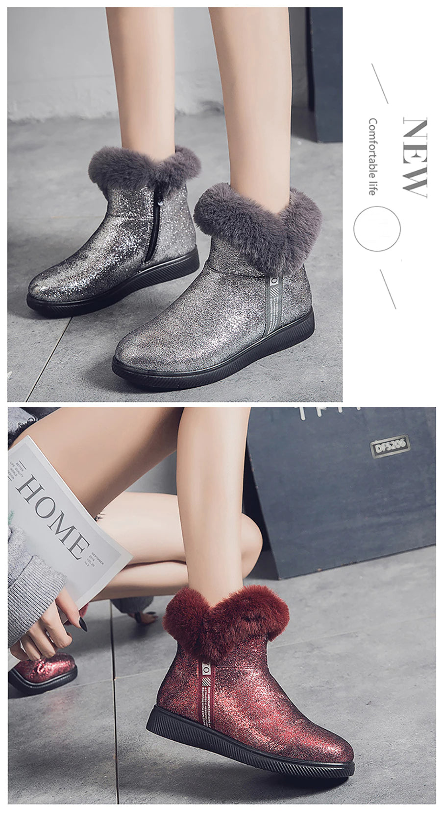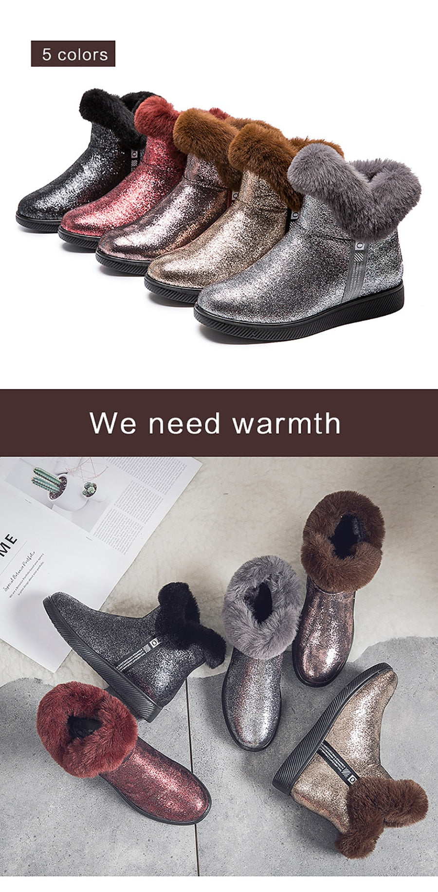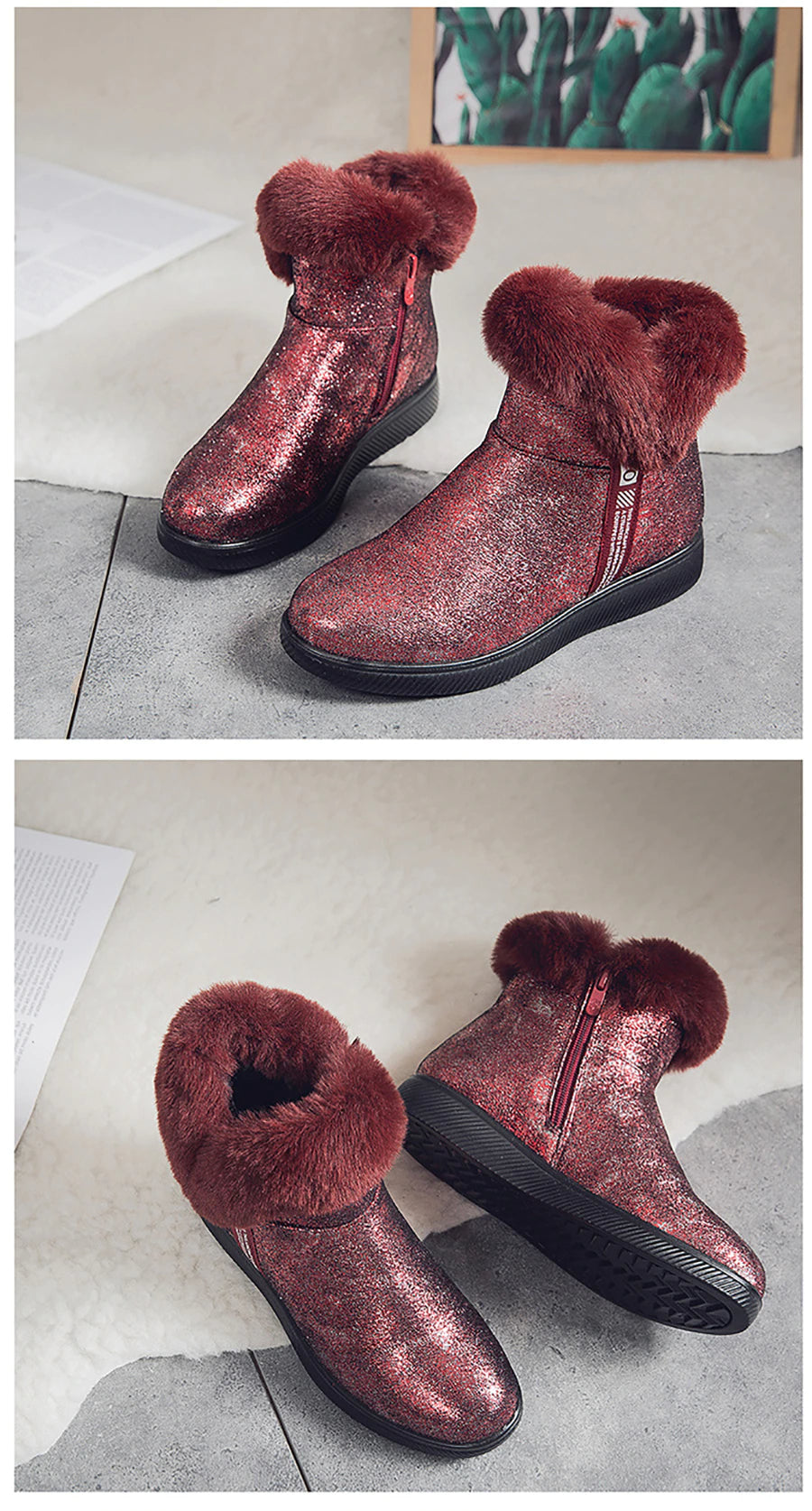 Botas de Invierno Brillantes con Pelo