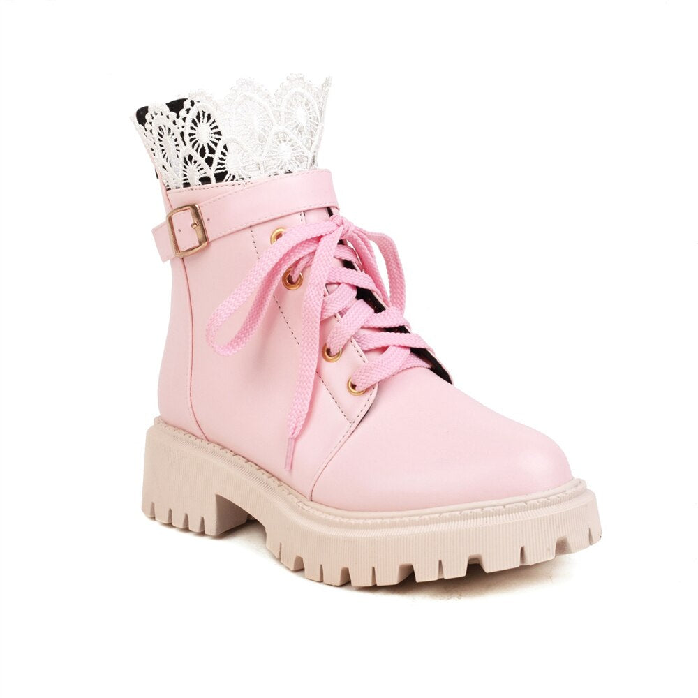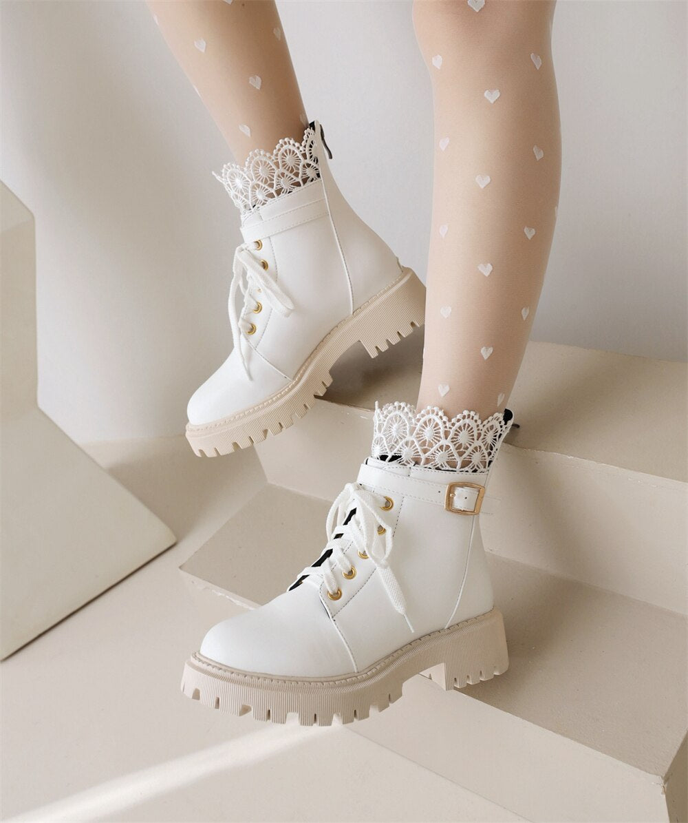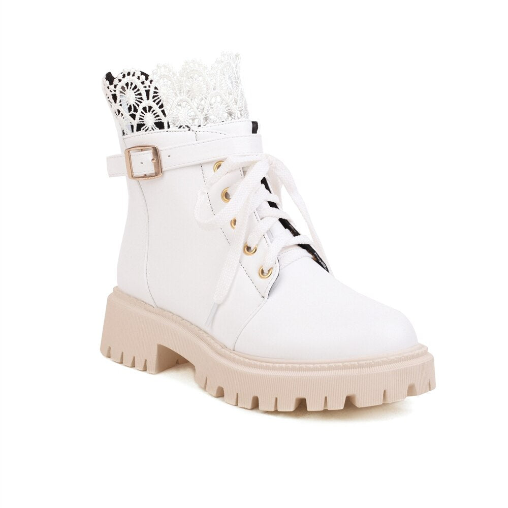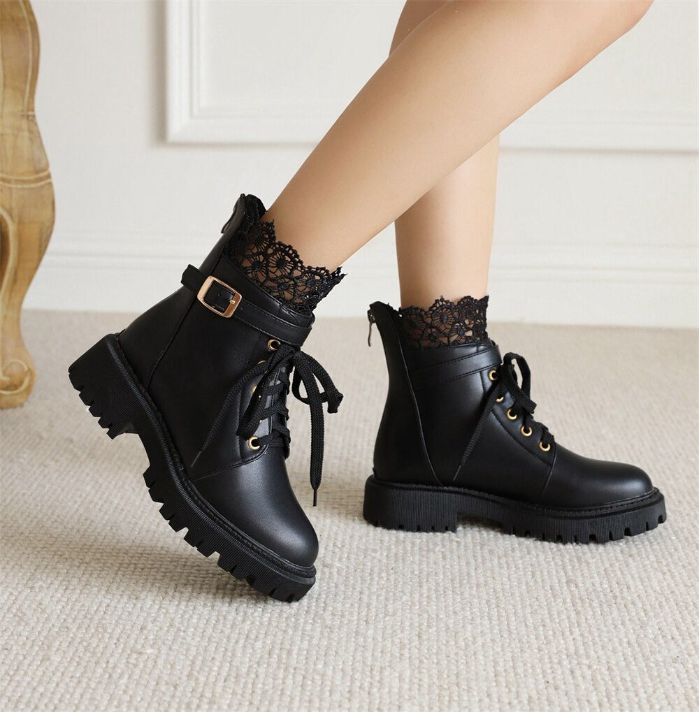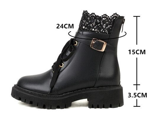 Botas De Combate Con Cordones y Encaje