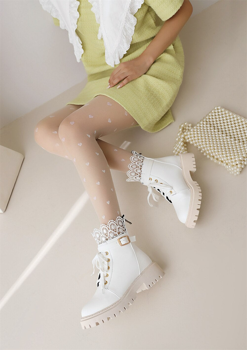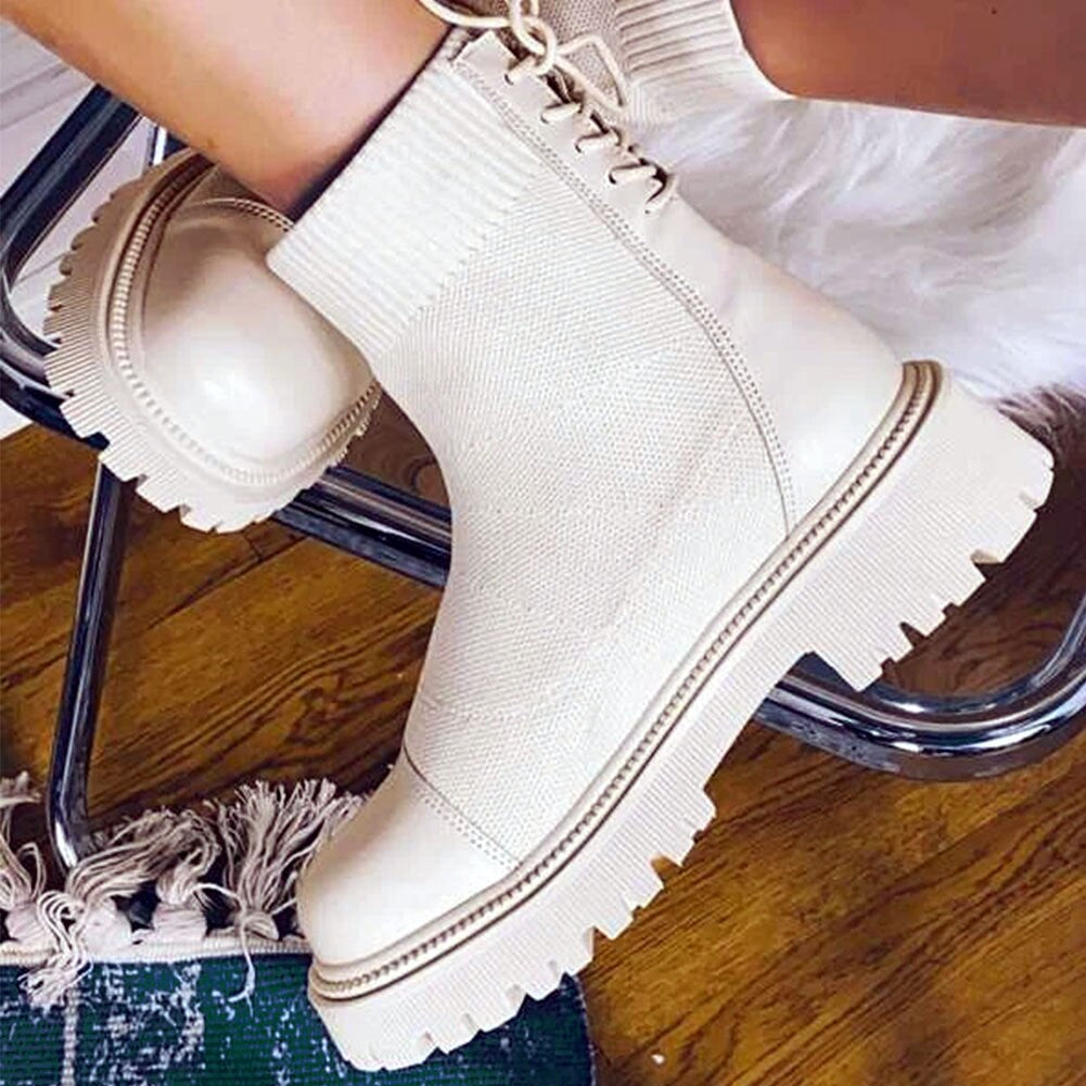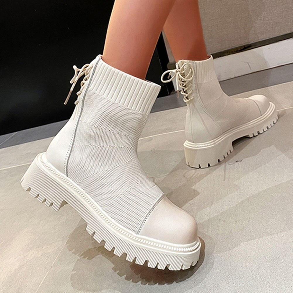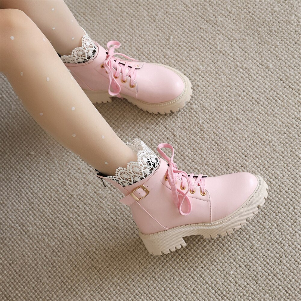 Botas De Combate Con Cordones y Encaje
