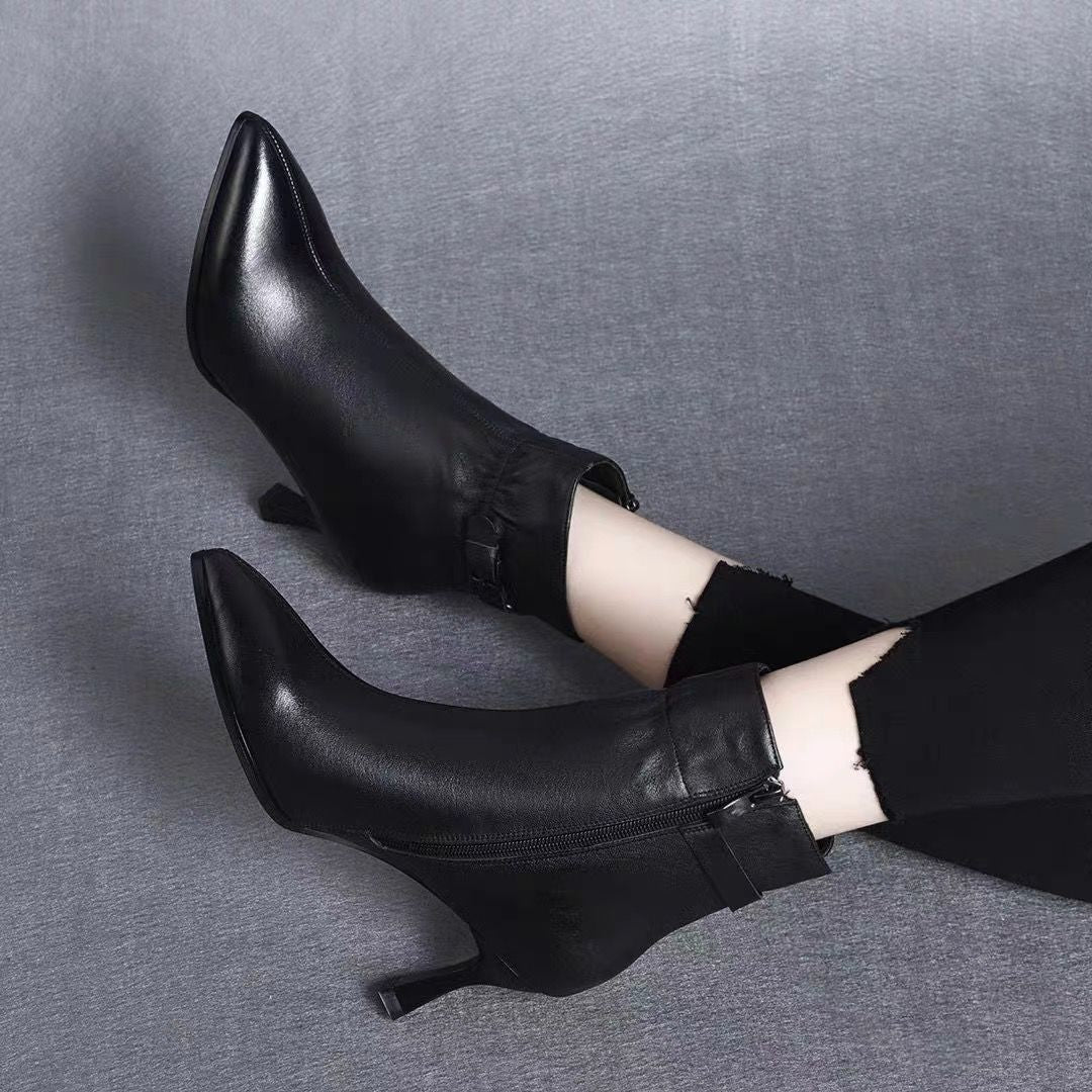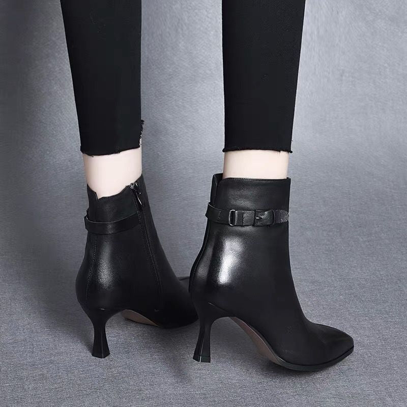 Botas De Cuero De Tacón Fino