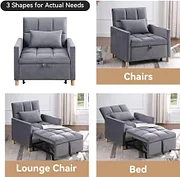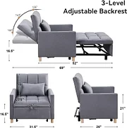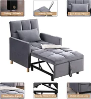 Otnqu Cama con sillón cama, sofá cama individual convertible con almohada, cama extraíble con respaldo ajustable, sillón multifuncional para sala de estar (gris)