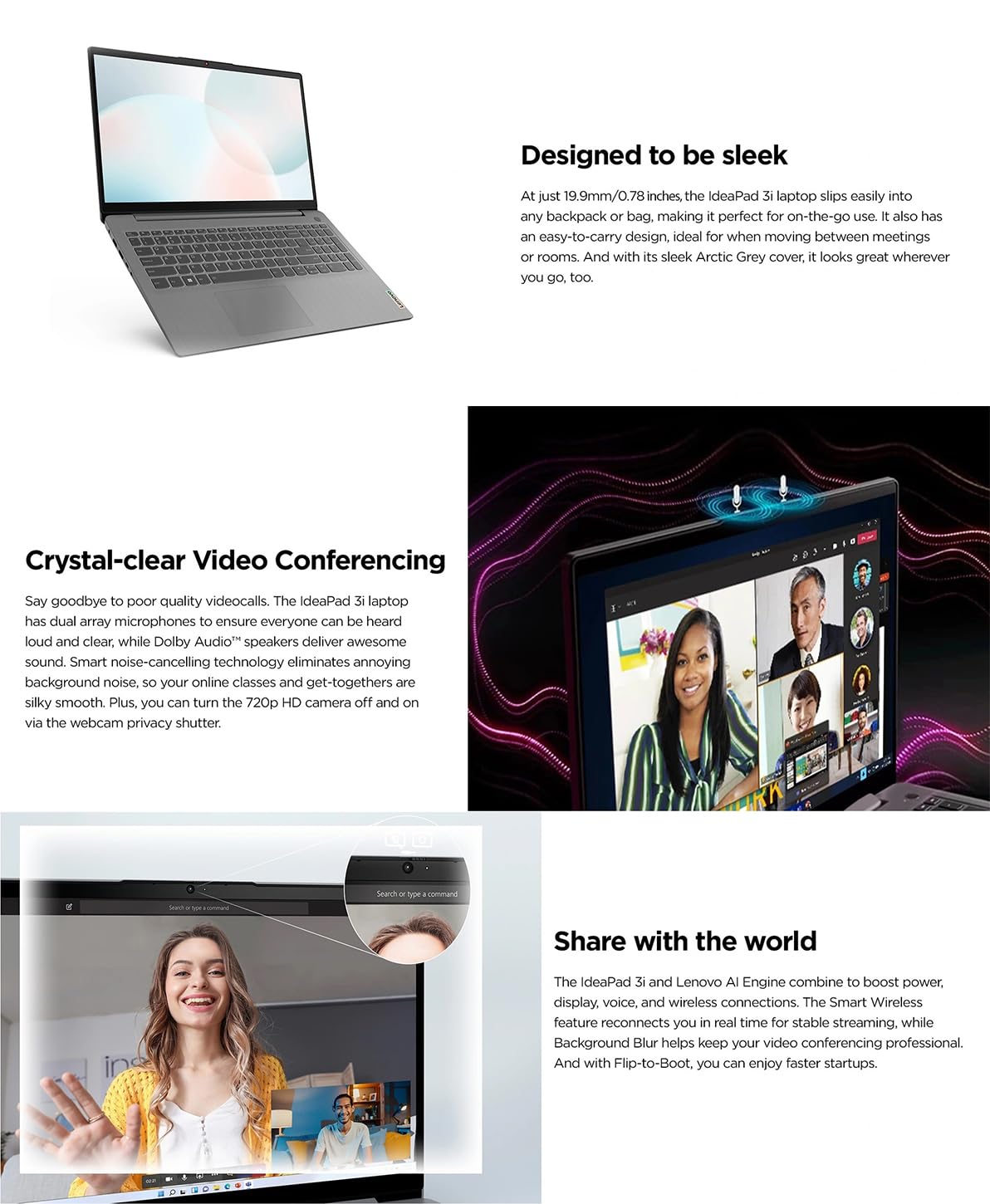 Lenovo Ideapad 3i - Laptop para estudiantes de negocios 2023, pantalla