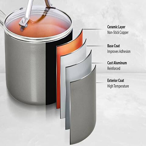 - NON-STICK GRANITE CERAMIC COATING - The ultra non-stick ceramic interior of the induction pans in this cooking set is designed for maximum and even heat transfer. Plus, it's durable and lasts longer than traditional non-stick coatings - no chipping, peeling or peeling.