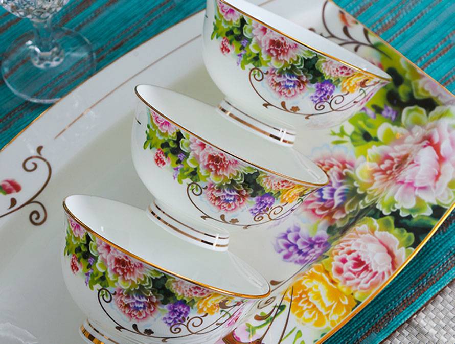Detailed Image 60 Piece Fine European Bone China Flower Bowl Set