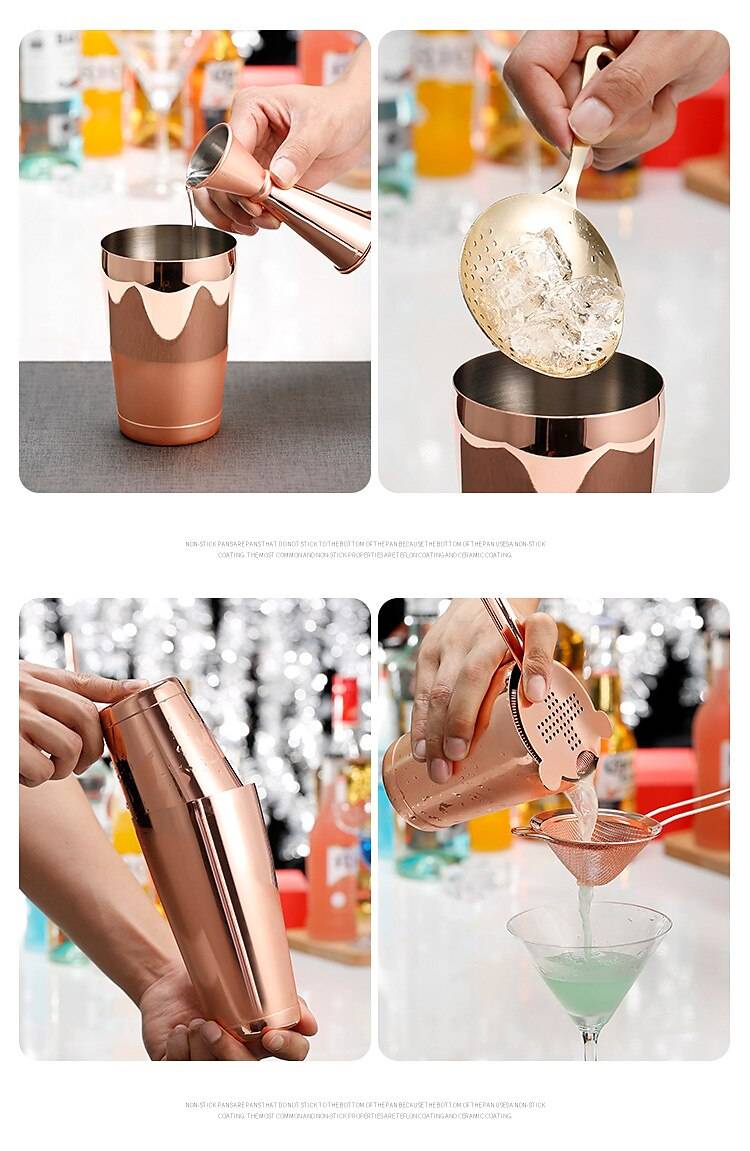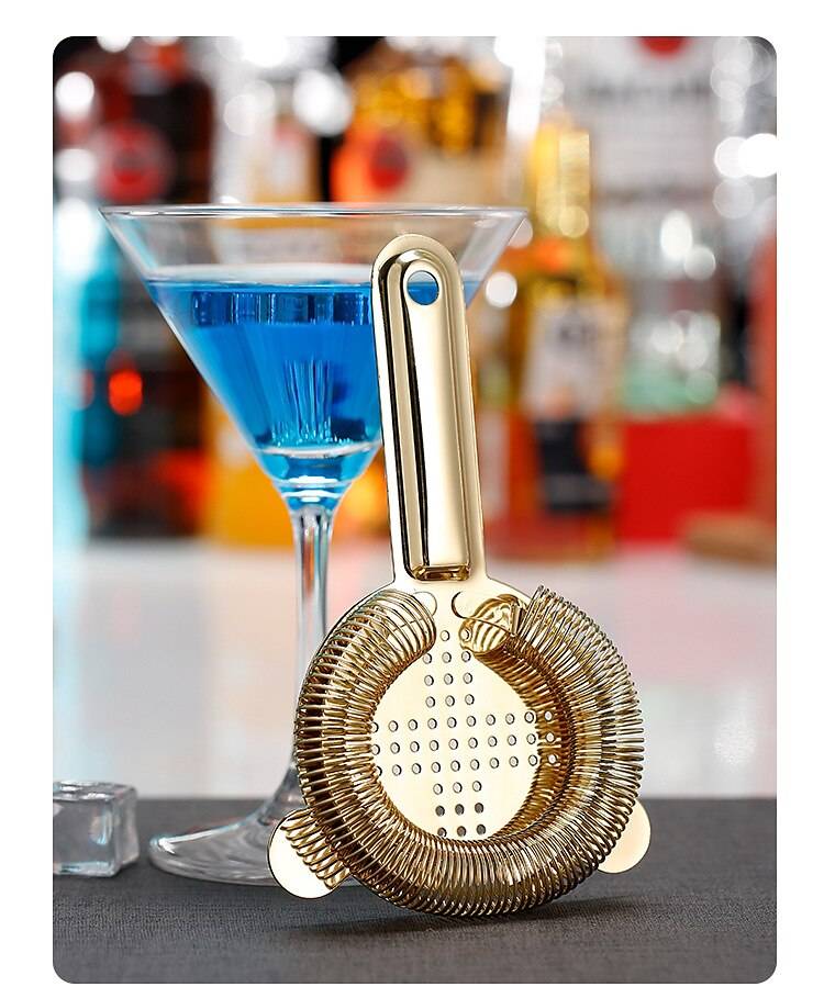 Boston Cocktail Shaker Set 12 Stainless Steel Bartender Kit, Including Shaker Tins, Double Jigger, Muddler, Mixing Spoon, Ice Tong, Cocktail Strainer and Conical Strainer by Barfame Gold Sliver Black