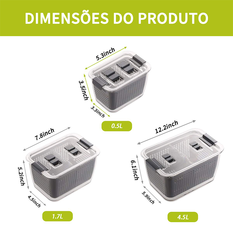 • Conjunto De Recipientes De Limpeza Para Armazenamento De Vegetais (3 Peças)