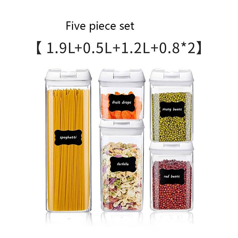 Kitchen Plastic Storage Tank Sealed Five-piece Fresh-keeping Box Food-grade Transparent Storage Tank Easy-to-buckle Can