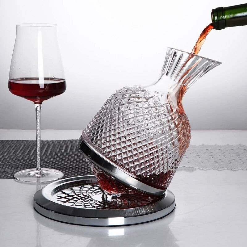 • Luxury Rotating Wine Decanter Lead-Free Clear Crystal Glass Red Wine Aerator Decanter Set Elegant for Wine Lovers